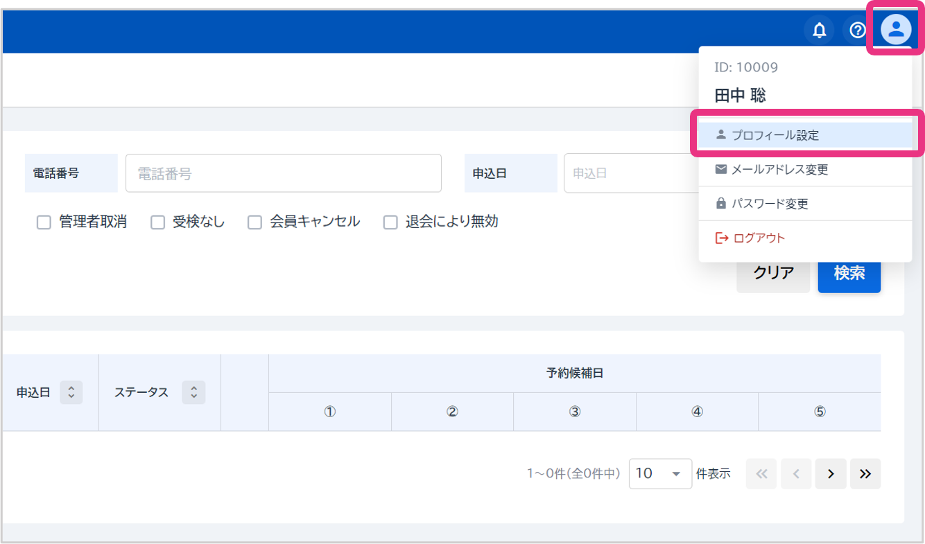 アカウントに関すること 設定 プロフィール(氏名)を編集する ログイン後、画面右上のアイコンをクリックし、表示されるメニューから「プロフィール設定」をクリックしてください。 登録内容を変更し、『登録』ボタンをクリックしてください。