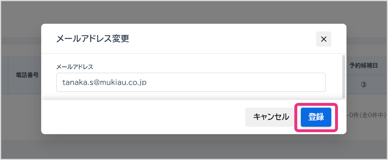 メールアドレスを編集し、『登録』をクリックしてください。