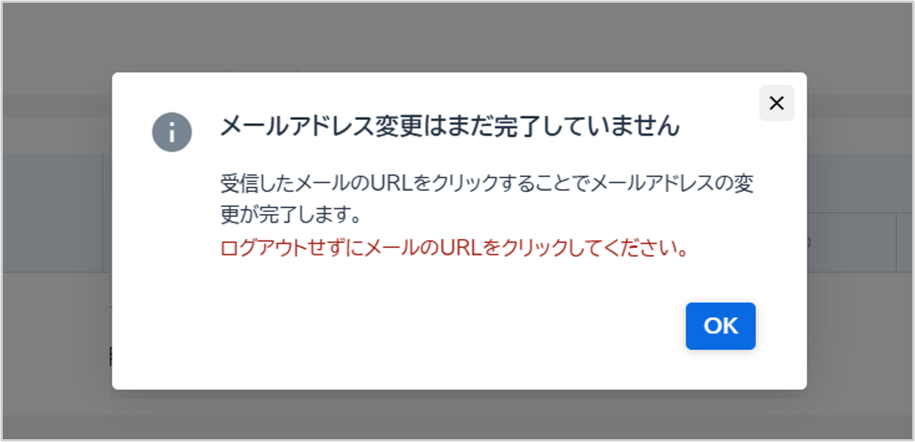 入力したメールアドレス宛に認証メールが送信されます。この時点ではメールアドレスの変更は完了していません。必ず送信されたメールのURLから認証をおこなってください。